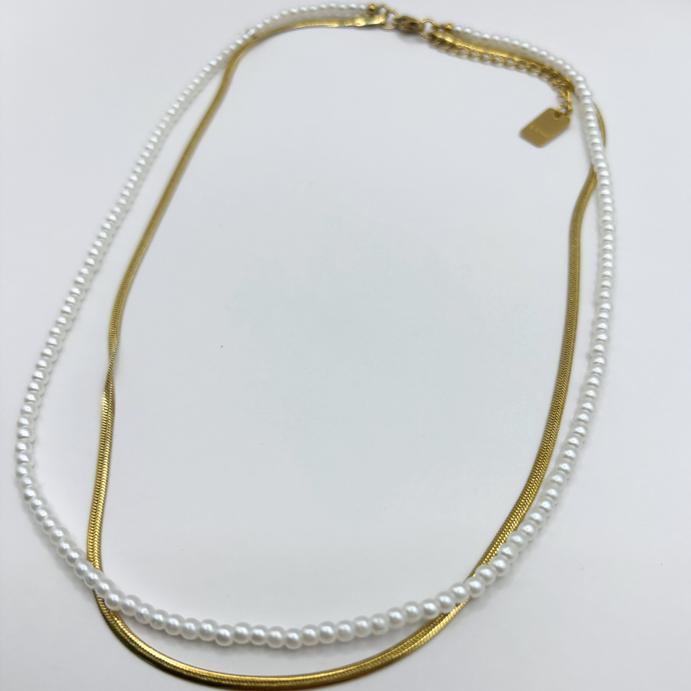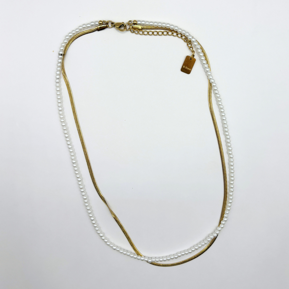 Combinatieketting imitatieparel en snake